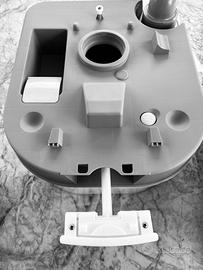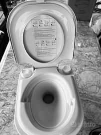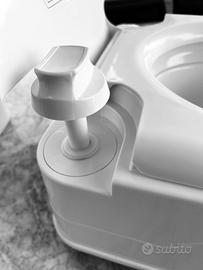 Wc portatile chimico per campeggio o in caso di bisogno, con serbatoio acqua da 20 Lt e 24 Lt di sporco. Dimensioni Altezza seduta 44cm Larg 37cm profondità 46cm Portata max 130 Kg , pompa acqua a pistone con due getti laterali e scomparto porta rotolo carta igienica. Pulsante sgancio per separare i due serbatoi per un facile svuotamento grazie al tubo di scarico girevole con valvola di sfiato e inodore grazie alla chiusura a ghigliottina. Serbatoio acqua con tappo superiore per un pratico riempimento in qualsiasi lavandino. Entrambi i serbatoi dotati di pratiche maniglie per il trasporto sicuro.
