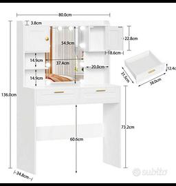 Toiletta da trucco per ragazza vendo per inutilizzo, bianca, con luci led che cambiano toanlita del colore, prezzo non trattabile! Un mese di vita! Come nuova