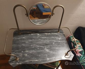 Toilette vintage italiano, degli anni '30/40, struttura in metallo, piani in marmo venato e uno specchio basculante. In ottimo stato come da foro. Non spedisco, ritiro Fiorano al Serio, Bg.