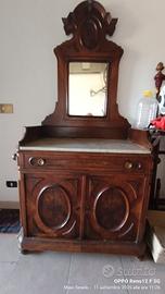 Toletta primi del Novecento. Sportelli inferiori e parte superiore centrale in legno intagliato. Molto bella.