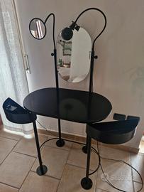 toletta moderna nera in resina e metallo con 2 cassetti laterali specchio doppio specchio e luce direzionabile ideale come postazione trucco Frezza arredamenti