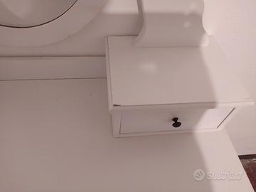 Vendo questa Toletta in legno dotata di 5 cassetti ,uno specchio inclinabile e sgabellino. La struttura ha diversi segni, andrebbe riverniciata.