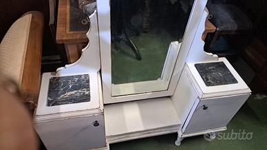 toletta liberty primi 900 shabby piano in marmo nero misura 115x29 altezza 140. I bussolotti laterali misurano 32x28 altezza 60. Ottime condizioni....M&P Antichità siamo un negozio specializzato in antiquariato vintage e shabby vendita al dettaglio e all ingrosso scarichi settimanali oltre 500 articoli in negozio, abbiamo una vasta scelta di como comodini tolette armadi letti vetrine vetrinette credenze servanti angoliere librerie tavoli tavolinetti sedie poltrone poltroncine divani lampade lampadari tappeti scrivanie scrittoi secretere ribaltine consolle quadri cornici specchi cassapanche bauli oggettistica varia idee regalo e molto altro ci troviamo a Roma zona Castelverde via Massa San giuliano 26b POSSIBILITÀ DI CONSEGNA E SPEDIZIONE IN TUTTA ITALIA