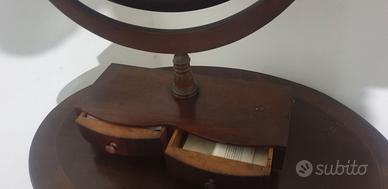 Toletta specchio antica in legno con cassettini
