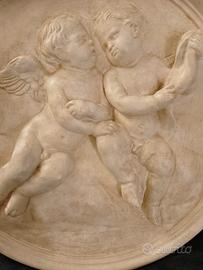 Bellissimo tondo decorativo in gesso con motivo romantico. Perfetto per testata letto, arredamento classico.
