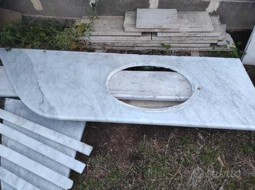 top in marmo di Carrara, smontato per rinnovo bagno,in buone condizioni completo di zoccolatura e un altra mensola per ulteriori informazioni chiedete pure.