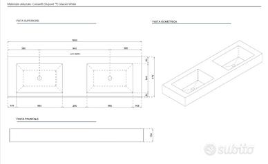 Top con doppio Lavabo in Corian® lunghezza 160 - profondità 47 Colore: Glacier white Finitura semilucida Staffe di fissaggio opzionali