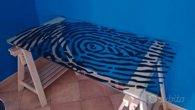 Top in cristallo temperato, non più in produzione IKea, di grande solidità e bellezza. Escluse le basi in legno.