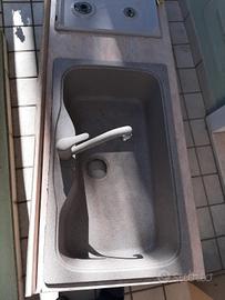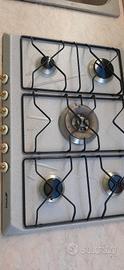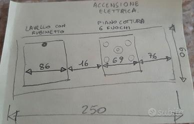 Top cucina completo di lavandino e rubinetto miscelatore, piano cottura a gas a 6 fuochi con accessori.
