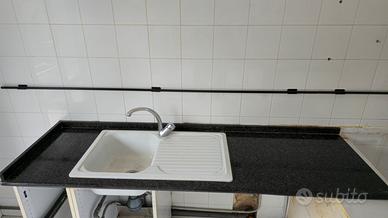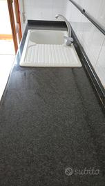 top cucina in granito grigio/nero diviso in 2 pezzi compreso di barre laterali (stesso materiale) con incasso per lavabo e piano cottura. Dimensioni: Ripiano 1: 195 x 61 x 3 cm Barra ripiano 1: 195 x 4,5 x 2 Ripiano 2: 151 x 61 x 3 cm Barra ripiano 2: 151 x 4,5 x 2 cm Barra laterale: 57 x 4,5 x 2 cm. Tutti i componenti sono GIÀ SMONTATI. Per info e ulteriori foto contattatemi in privato 😋