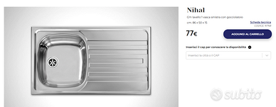 - CM modello Nihal - Lavello in acciao inox 1 vasca con gocciolatoio 86x50cm