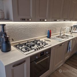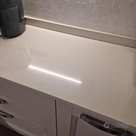 Vendo tutto in ottime condizioni d'uso per cambio piano cottura e lavello. Top in quarzo con profondità di 60cm, lunghezza blocco lavello e piano cottura 3mt, lunghezza lastra dx senza fori per elettrodomestici, 2,75mt. Per ulteriori informazioni, contattami. Vendo anche separatamente le due lastre. Senza difetti.