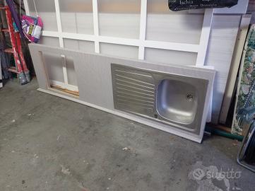 top piano cucina colore grigio chiaro completo di lavello con scolapiatti e foro per fornelli. lunghezza 210 ilcome nuovo senza difetti. No spedizione