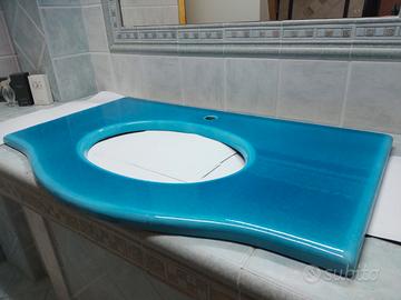 Top Romazzino Colore AZZURRO MARE CERASARDA. Dimensioni MT 1 x 50 Spessore 3 cm, .Utilizzabile per lavabo Sottopiano con base Mobile o in Muratura.