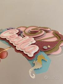 Topper Cake Compleanno personalizzato con numero e nome tema sirena.