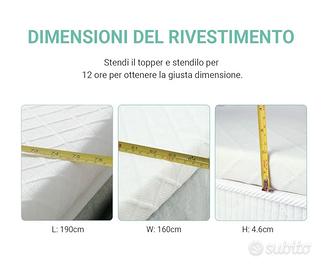 RECCI Topper Memory Foam 4cm, Topper Materasso per Alleviare Pressione, Coprimaterasso con Rivestimento Ipoallergenico in Bamboo - Rimovibile e Lavabile, CertiPUR-EU (160x190x4cm)