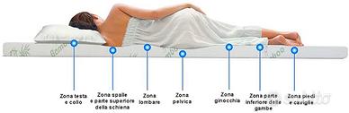 TOPPER IN MEMORY FOAM AD ALTA DENSITA' Caratterizzato da una costruzione unica per il massimo del comfort migliorando tutti i punti di pressione garantendo così il rilassamento totale di tutto il corpo · Lo strato in vero Memory si adatta perfettamente alla forma del vostro corpo per una distribuzione omogenea del peso- Realizzato con memory foam da 5 cm di spessore a 7 zone