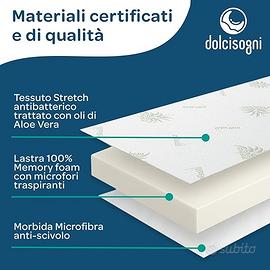 DOLCI SOGNI - Topper Memory Foam 160x190 Alto 5 cm - Correttore Materasso - Topper in Memory per Materasso Matrimoniale 160x190 Sfoderabile in Aloe Vera - Made in Italy comprato su Amazon Da ritirare a Catania nei pressi di Via Vittorio Veneto/Via Milano