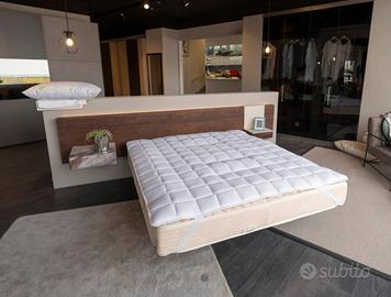 Morbido topper per letto singolo in fibra trapuntato con disegno a quadrati che aiuta a mantenere nel tempo in inalterata la forma, la sofficità, ed una temperatura costante conferita. Dalla fibra interna.