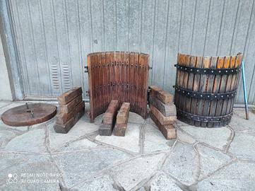 Torchio a cricco per uva, esteticamente gradevole, perfettamente funzionante. Diametro interno gabbia 50 cm, diametro vite senza filetto 40 mm, altezza totale 156 cm, in dotazione mezzelune, tacchi, asta movimentazione, vero affare !
