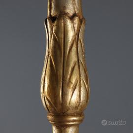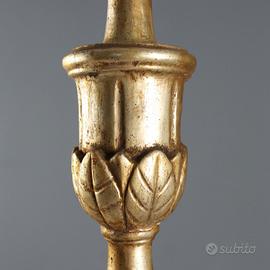 Torciere in legno intagliato e dorato con decori a foglie d'acanto. Evidenti