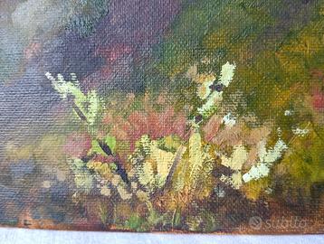 Torre Cotogna, olio su tela 60x40 cm. Paesaggio figurativo moderno dalle atmosfere leopardiane: "D'in su la vetta della torre antica, Passero solitario, alla campagna. Cantando vai finchè non more il giorno; Ed erra l'armonia per questa valle"; caratterizzato da un approccio spontaneo e descrittivo . La Torre Cotogna, posta al centro del piano focale superiore, crea un forte senso di verticalità e dominanza, le pennellate materiche cercano di restituire la rugosità della pietra della torre e la vegetazione spontanea della collina.