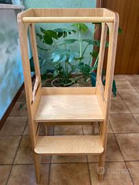 Vendo torretta montessoriana Bianconiglio Kids modello EVO (Learning Tower) in legno, ideale per permettere ai bambini di partecipare in sicurezza alle attività quotidiane in cucina o al tavolo.