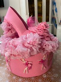 Torta scenografica realizzata interamente a mano con scarpa da ballo e ballerine
