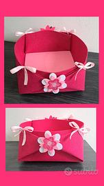 Torta di pannolini in feltro, con base riutilizzabile come porta oggetti.