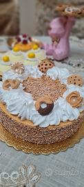 Bellissima torta finta scenografica, adatta a tutti gli arredi. Realizzata a mano e rifinita con finta panna, finti biscotti, finta nocciola. Non commestibile! Da esposizione misura 24x13 completa di vassoio