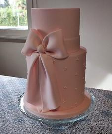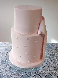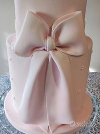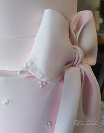 Torta finta scenografica per feste e eventi, battesimo, comunione, compleanno, anniversario ecc. Utilizzata solo una volta per un battesimo, purtroppo il fiocchetto si è un po' rovinato ed è caduto qualche pallino decorativo, ma si può sistemare. Ritiro a mano a Latina