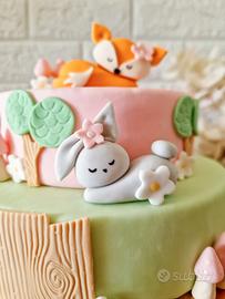 Ecco una torta scenografica (non commestibili) in pasta di zucchero a tema Bosco: ideale per decorare la tavola, fare foto indimenticabili e creare un’atmosfera incantata! 🦊