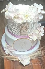 vendo torta scenica per comunione bimba alta 30 cm , diametro alla base 30 cm come nuova, si può personalizzare
