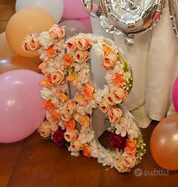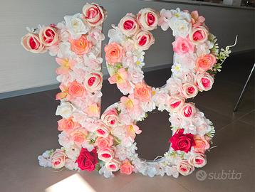 Inoltre come da titolo compreso un numero 18 decorativo... Addobbo da sotto tavolo in cartone decorato con tappeto di fiori,