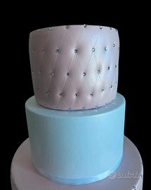 Colori bianco candido e rosa, i piani rosa sono trapuntati con cristalli.