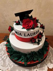 Torta in polistirolo su tre piani ricoperta con Fommy. I dettagli sono realizzati tutti a mano utilizzando Feltro o pannolenci. Dimensioni: altezza 35cm e diametro 40cm