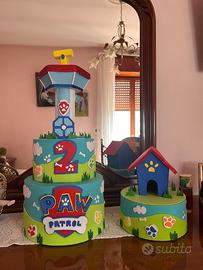 Torta scenografica Paw Patrol per secondo compleanno. In polistirolo e gomma Eva