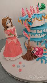 torta scenografica tema "la bella addormentata nel bosco" realizzata in gomma eva e porcellana fredda.