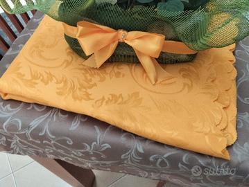 Torta scenografica, tovaglia raso e centrotavola.