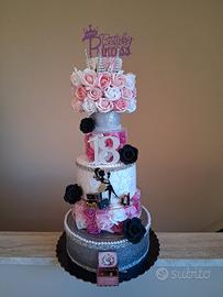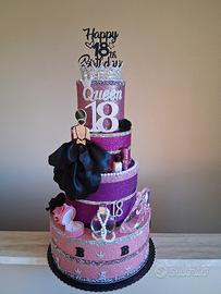 torte finte molto belle e ricche di particolari ,vendute singolarmente 150 euro due torte con addobbi con scritta 18 , invece torta con tutte rosse 80 euro. Chi acquisterà tue 3 torte prezzo 350 euro.
