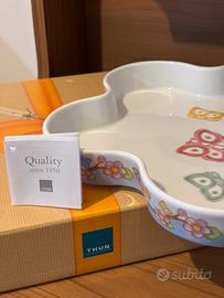 Tortiera in ceramica della Thun, appartenente alla serie fiori di pesco, mai utilizzata, completa di cartellino e involucro originale