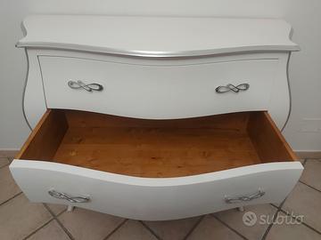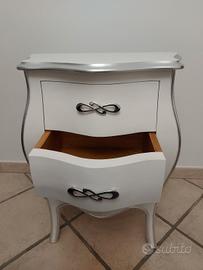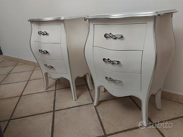 Mobili per camera da letto marca TOSATO MADE IN ITALY in legno MASSELLO colore Bianco con profilo Argento. Bellissimo set, vendo per cambio stile. Come nuovi.