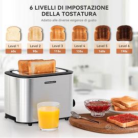 prodotto nuovo con piccola ammaccatura impercettibile come in foto KitchenBoss Tostapane in Acciaio Inox:Tostapane per 2 fette con Pinze, 6 Livelli di Tostatura, con Cassetto Raccoglibriciole e Griglia per il Pane, Funzione di Spegnimento Auto e Sbrinamento, 870 W