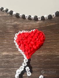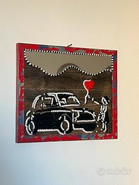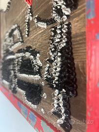 Specchio decorativo realizzato a mano, con un linguaggio materico forte e riconoscibile. Misure 40x30 La superficie è arricchita da gocce di silicone bianco e nero, applicate singolarmente per creare un effetto tridimensionale e tattile: la luce si muove sulle forme e cambia continuamente percezione. Elemento centrale un cuore rosso in acrilico, che crea contrasto e profondità, dialogando con il riflesso dello specchio. ✔ Specchio decorativo su base in legno ✔ Silicone lavorato a mano (rilievo materico) ✔ Pezzo unico ✔ Cornice vissuta, carattere industrial/pop Non è un semplice specchio: è un oggetto che unisce riflesso e materia. “Se non lo tocchi, non esiste.” MysArts Ideale per ambienti moderni, ingressi, locali o spazi creativi.