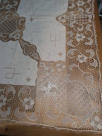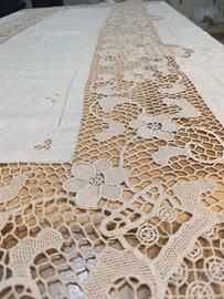 Vendo una pregiata e raffinata tovaglia rettangolare, lavorata interamente a mano. Ideale per impreziosire pranzi e cene importanti o come oggetto da collezione.