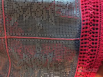 Runner per tavolo interamente e finemente lavorato a mano all’uncinetto con filo di cotone nei colori rosso e verde