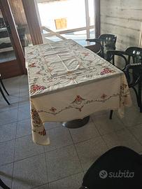Tovaglia lavorata tutta a mano anni 50 con 12 tovaglioli misure 2,50 m ×1,60m. Mai utilizzata.