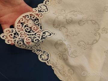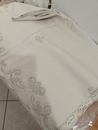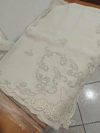 tovaglia antica con ricami pizzo 12 tovaglioli