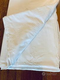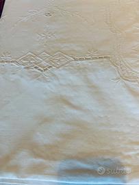 Bellissima Tovaglia antica ricamata a mano in puro cotone, con 12 tovaglioli coordinati.