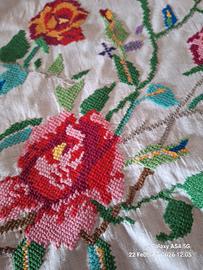Tovaglia antica ricamata a punto croce x10 misure 2,10x1,50